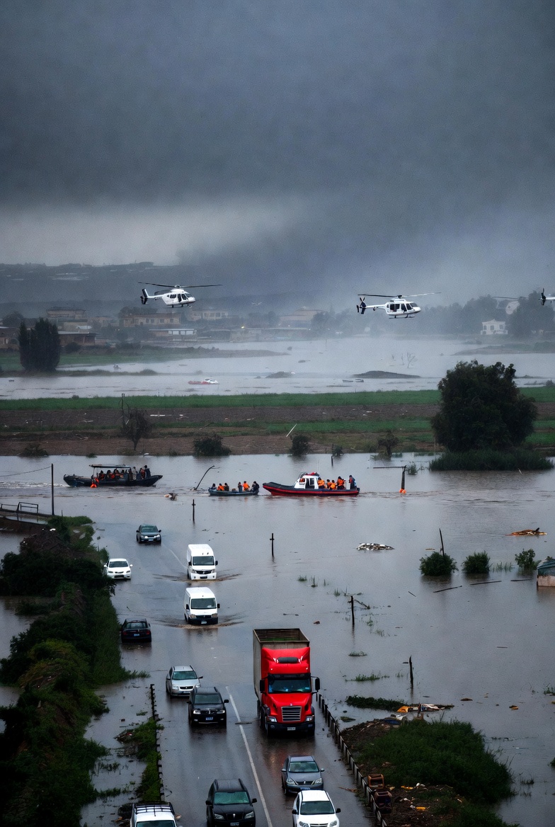 Le Maroc fait face à des inondations exceptionnelles dans le nord-ouest du pays depuis fin janvier/début février 2026, causées par des pluies torrentielles et diluviennes après plusieurs années de sécheresse. Ces intempéries ont provoqué des crues importantes, notamment des oueds et fleuves comme le Loukkos et le Sebou, aggravées par des lâchers d’eau de barrages saturés (comme Al-Wahda dépassant largement sa capacité).Les autorités marocaines, via le ministère de l’Intérieur, ont lancé des opérations d’évacuation massives et préventives pour protéger les populations. Le bilan le plus récent (actualisé autour du 6-8 février 2026) fait état de plus de 154 000 personnes évacuées (154 309 selon certaines sources officielles), principalement dans les provinces suivantes :Larache (la plus touchée, notamment autour de Ksar El Kébir) : environ 112 000 à 112 695 personnesKénitra : environ 23 000 personnesSidi Kacem : environ 14 000 personnesSidi Slimane : environ 4 000 personnesLes évacuations se font souvent par bateaux, hélicoptères (y compris de la Gendarmerie royale et des Forces Armées Royales), et camions, avec un déploiement massif des forces de sécurité, de la protection civile et de l’armée pour acheminer de l’aide humanitaire vers les zones isolées. De nombreuses routes sont submergées, des terres agricoles (comme des champs de citronniers) inondées, et certains villages/douars restent encerclés par les eaux.La situation reste préoccupante avec des alertes météo persistantes, des risques de glissements de terrain, et même des séismes mineurs signalés récemment dans la zone inondée. Les pluies ont été parmi les plus intenses depuis des décennies dans le nord, avec des cumuls records (jusqu’à 150 mm en 24h par endroits), mais elles ont aussi permis de remplir fortement les barrages (réserves dépassant les 10 milliards de m³).