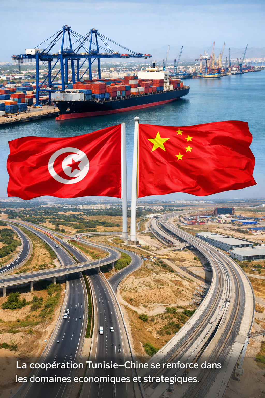 Légende : La coopération Tunisie–Chine se renforce dans les domaines économiques et stratégiques.